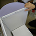 Stolek se snadno skládá. Na přání lze zvolit libovolný dekor pracovní desky.