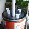 Stolek ve tvaru válce má plastovou konstrukci. Stolek je pojízdný díky kovové konstrukci s kolečky. Z obrandovaného víka se tyčí maketa brčka, takže celý stolek připomíná plechovku s ledovou kávou.