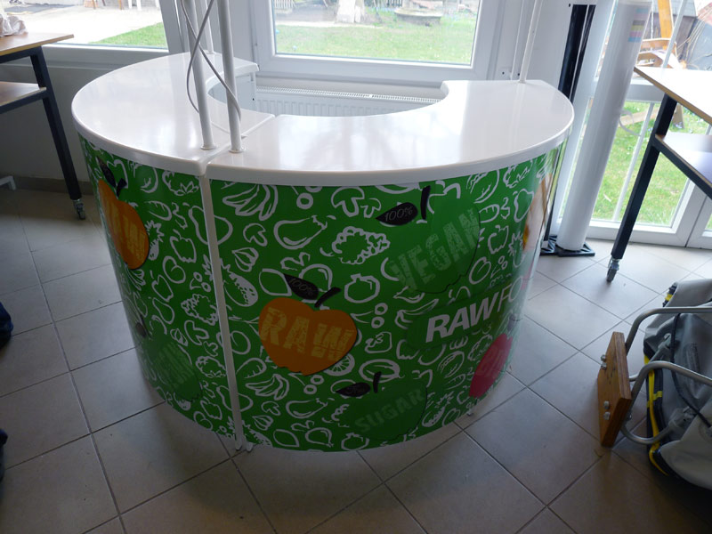 Cena stolku vč. plnobarevného brandingu, tvarované topkarty a transportního bagu: 16.400Kč