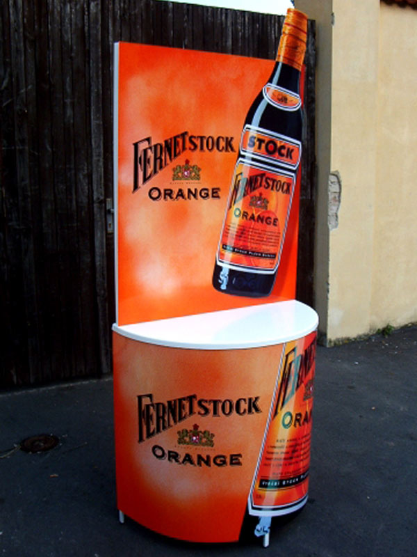 Branding stolku je natištěn na 0,5mm plastu, který lze snadno srolovat. Narozdíl od většiny konkurenčních stolků lze Vaším grafickým motivem potisknout i pracovní desku. Ta se tak stane součástí brandingu a stolek ta ještě lépe upoutá pozornost zákazníků.